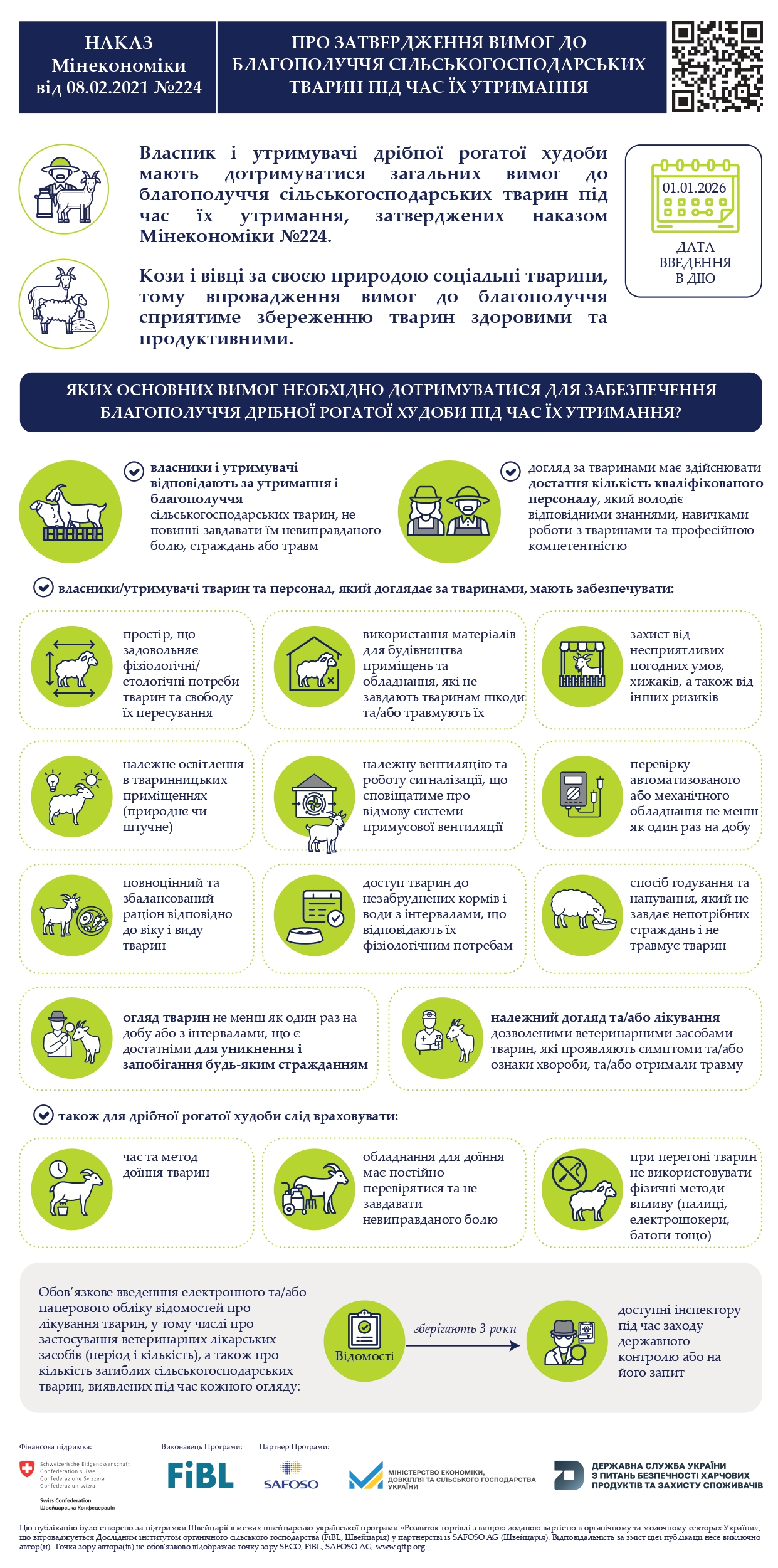 наказ Міністерства розвитку економіки, торгівлі та сільського господарства України від 08.02.2021 № 224 "Про затвердження Вимог до благополуччя сільськогосподарських тварин під час їх утримання"