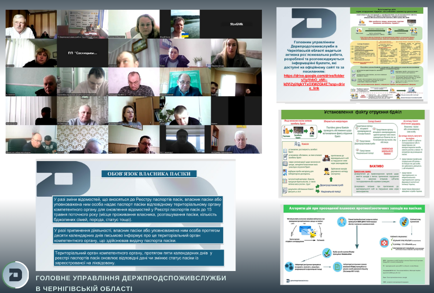 Під час наради фахівці Головного управління повідомили, що на Чернігівщині на сьогодні в господарствах усіх форм власності зареєстровано та паспортизовано 2435 пасік, у яких налічується 77480 бджолосімей. Питання профілактики та недопущення отруєння бджіл засобами захисту рослин знаходиться на особливому контролі.
