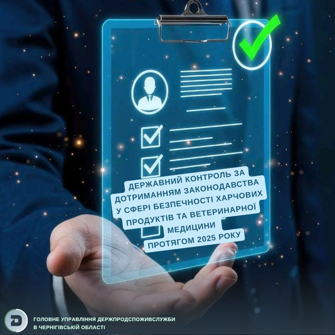 Держветінспекторами Головного управління Держпродспоживслужби в Чернігівській області протягом 2025 року проведено 159 перевірок суб’єктів господарювання у сфері безпечності харчових продуктів та ветеринарної медицини. За результатами заходів видано обов’язкових для виконання у визначені строки 34 письмові вимоги (приписи) щодо усунення порушень вимог законодавства.