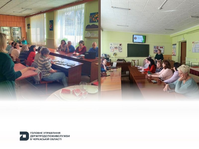 Начальник управління державного нагляду за дотриманням санітарного законодавства Головного управління Держпродспоживслужби в Черкаській області Віта Макогін, підкреслила важливість дотримання сучасних вимог у системі шкільного харчування. Учасники ознайомилися з презентацією на тему: «Сучасні вимоги щодо організації здорового харчування у закладах освіти». Відповідальним за організацію харчування особам закладів освіти наголошено на ключові показники чинного законодавства необхідні для забезпечення повноцінного харчування в закладах освіти.