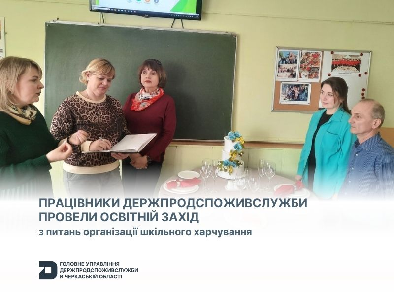 Захід організовано фахівцями управління державного нагляду за дотриманням санітарного законодавства Головного управління Держпродспоживслужби в Черкаській області для осіб, відповідальних за організацію навчально-практичних курсів для кухарів закладів освіти.