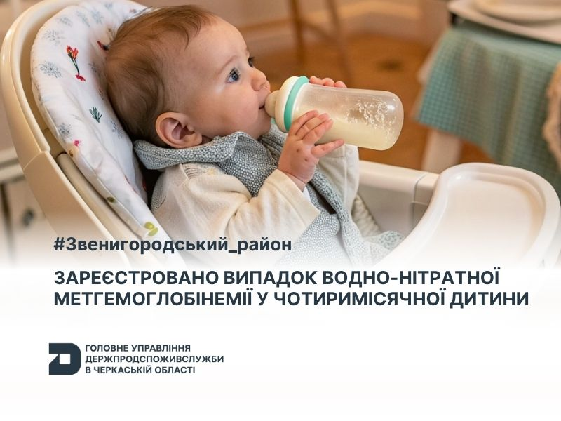 Головне управління Держпродспоживслужби в Черкаській області інформує: у Звенигородському районі зафіксовано випадок водно-нітратної метгемоглобінемії у чотиримісячної дитини.