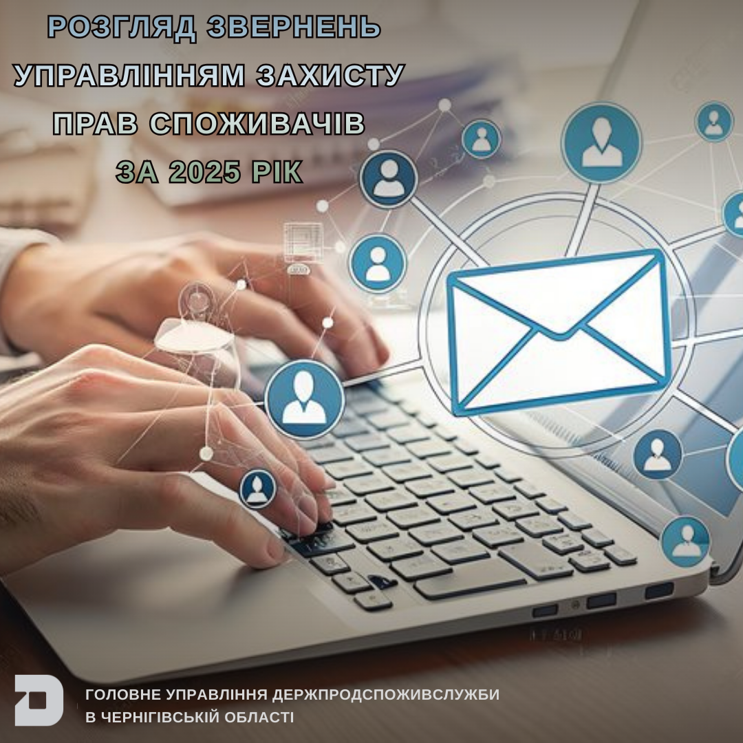 Протягом 2025 року до Управління захисту прав споживачів та контролю за регульованими цінами Головного управління Держпродспоживслужби в Чернігівській області надійшли звернення від 654 споживачів щодо порушення прав споживачів у відповідності до вимог законодавства про захист прав споживачів та ціноутворення, із них:
