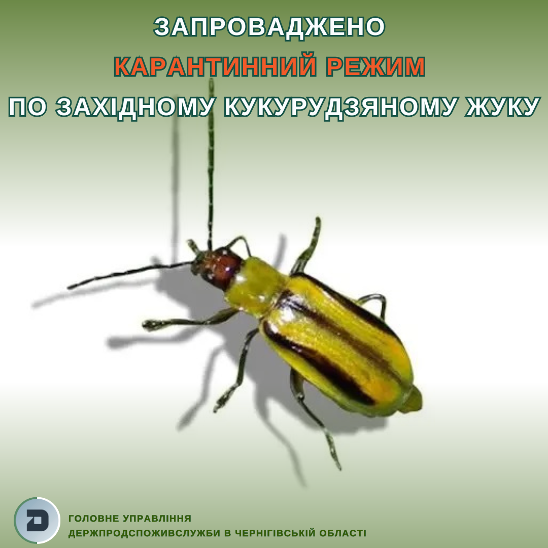 При проведенні фітосанітарного моніторингу державним фітосанітарним інспектором відділу карантину рослин Управління фітосанітарної безпеки в феромонних пастках на полі площею 24 га ФГ «Ставиське» в селі Опеньки Козелецької селищної територіальної громади Чернігівського району виявлено регульований шкідливий організм – західний кукурудзяний жук (Diabrotica virgifera virgifera Le Conte), що підтверджено висновком фітосанітарної експертизи Державної установи «Чернігівська фітосанітарна випробувальна лабораторія».