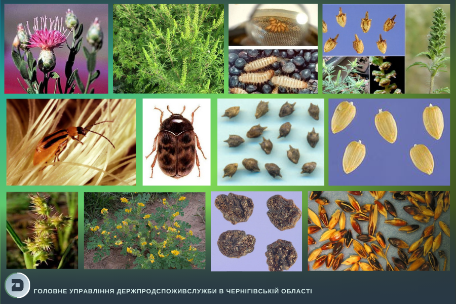 Учасників ознайомлено з карантинними організмами, які зустрічаються посівах соняшнику, насіннєвому матеріалі та зерні, призначеному для технічної переробки. Найпоширенішими серед них є капровий жук (Trogoderma granarium Ev.), західний кукурудзяний жук (Diabrotica virgifera virgifera Le Conte)., амброзія полинолиста (Ambrosia artemisiifolia L.), гірчак повзучий (Acroptilon repens L.), паслін колючий (Solanum rostratum Dunal.), ценхрус довгоголковий (Cеnchrus longispinus Fernald) та сорго алепське (гумай) Sorghum halepense (L.) Pers.).
