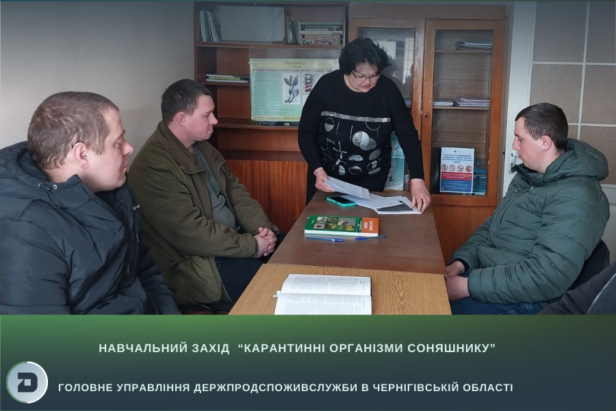 Для підвищення обізнаності аграріїв, господарська діяльність яких пов’язана з обігом соняшнику, на Бахмаччині державним фітосанітарним інспектором – головним спеціалістом відділу карантину рослин Управління фітосанітарної безпеки Головного управління Держпродспоживслужби в Чернігівській області проведено навчальний захід на тему: «Карантинні організми соняшнику».