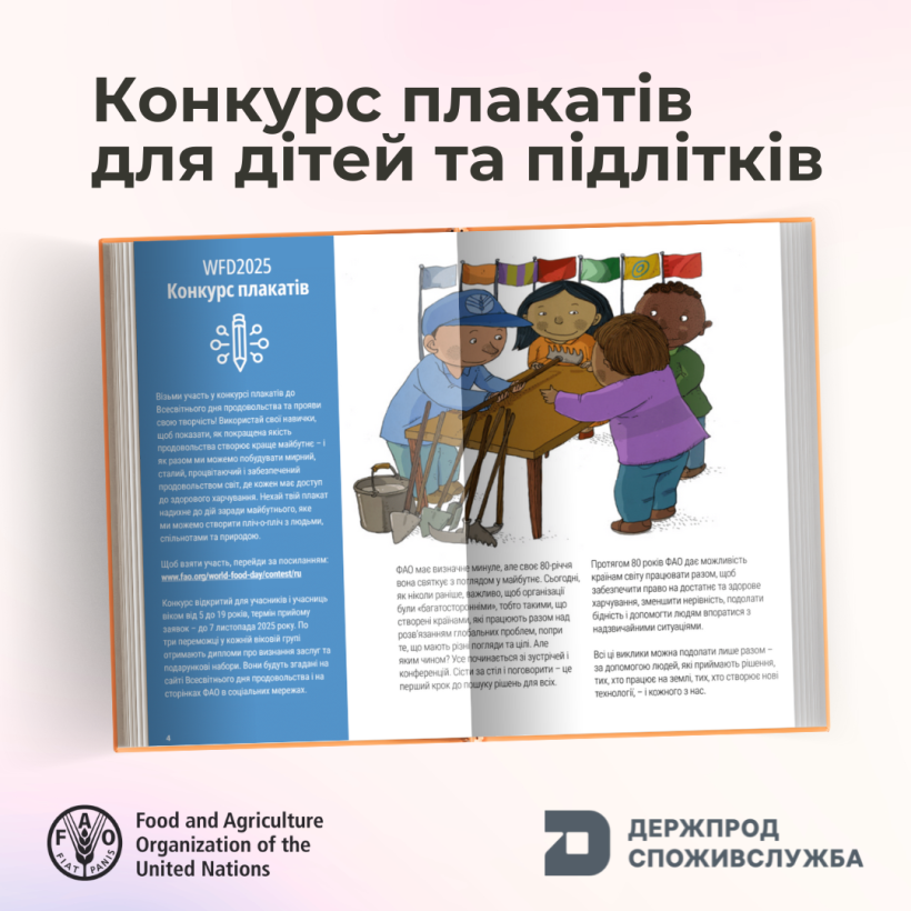 Продовольча та сільськогосподарська організація ООН (ФАО) та Держпродспоживслужба мають для маленьких українців особливий подарунок — стартує конкурс плакатів!