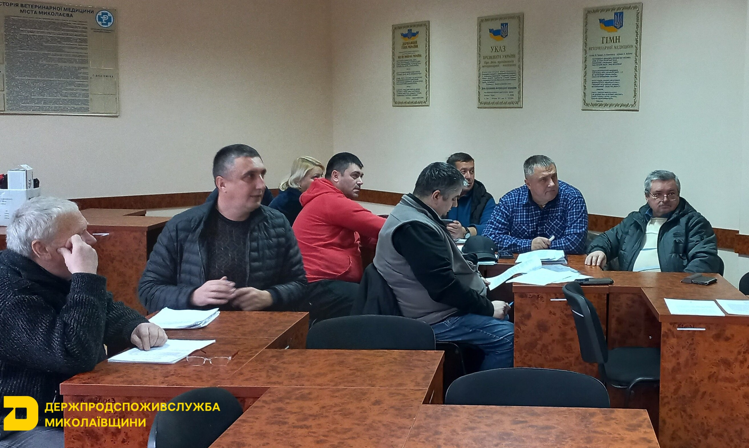 Постійно діючою комісією в складі представників управління безпечності харчових продуктів та ветеринарної Головного управління Держпродспоживслужби в Миколаївській області та Миколаївської регіональної державної лабораторії Держпродспоживслужби 4 грудня 2025 року проведено атестацію трьох офіційних ветеринарних лікарів Миколаївської обласної державної лікарні ветеринарної медицини з теоретичних та практичних знань щодо проведення передзабійного ветеринарного огляду та ветеринарно-санітарної експертизи м’яса та м’ясних продуктів для отримання офіційного допуску нанесення позначки придатності й ветеринарних штампів.