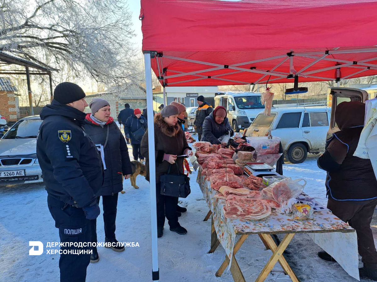 Під час заходу встановлено факт реалізації м’яса свинини на території Високопільської територіальної громади з порушенням вимог чинного законодавства. Працівниками Національної поліції складено два протоколи про адміністративні правопорушення.