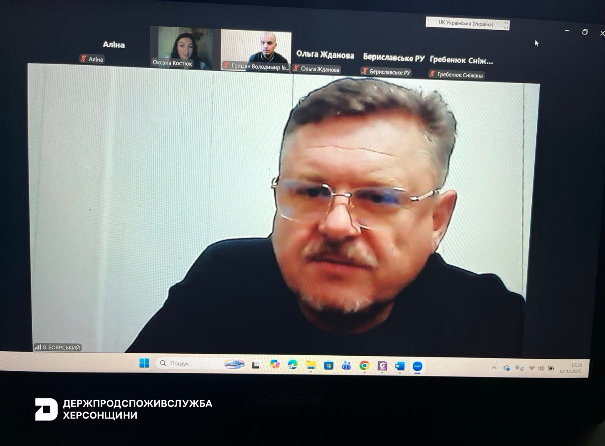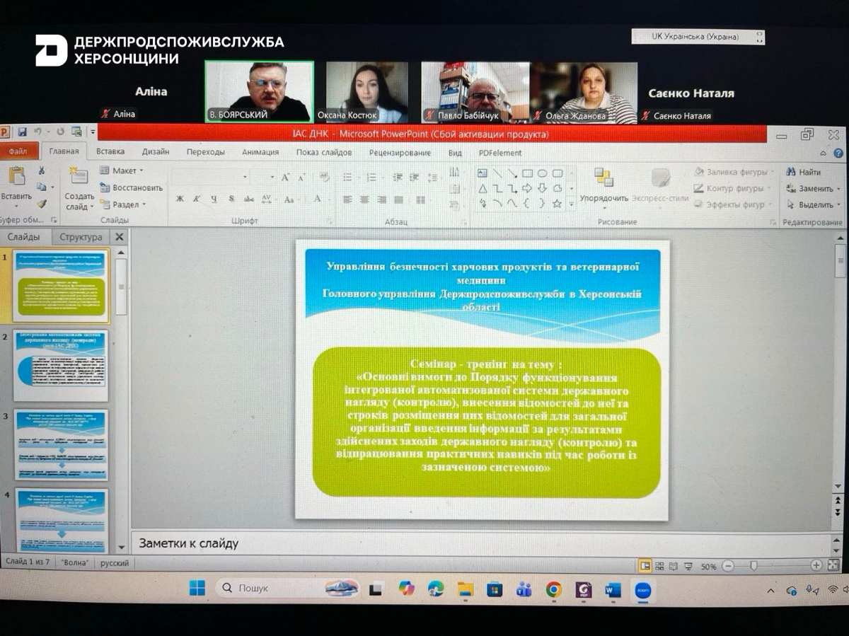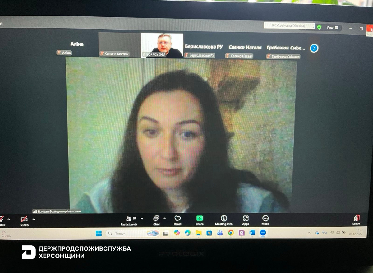 2 грудня в Головному управлінні Держпродспоживслужби в Херсонській області відбувся онлайн семінар-тренінг, присвячений Порядку функціонування інтегрованої автоматизованої системи державного нагляду (контролю) (далі – ІАС ДНК), внесенню відомостей до неї та строків розміщення цих відомостей для загальної організації введення інформації за результатами здійснених заходів державного нагляду (контролю) та відпрацювання практичних навиків під час роботи із зазначеною системою.