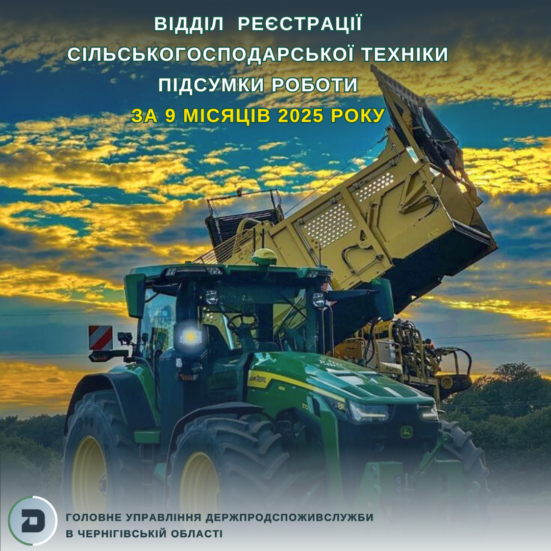 Діяльність відділу реєстрації сільськогосподарської техніки Головного управління Держпродспоживслужби в Чернігівській області спрямована на забезпечення належного контролю за обліком сільськогосподарської техніки, дотримання вимог чинного законодавства, підвищення якості надання адміністративних послуг громадянам і суб’єктам господарювання та проведення систематизації відомостей про власників тракторів, самохідних шасі, самохідних сільськогосподарських, дорожньо-будівельних і меліоративних машин, сільськогосподарської техніки з використанням Єдиного реєстру.