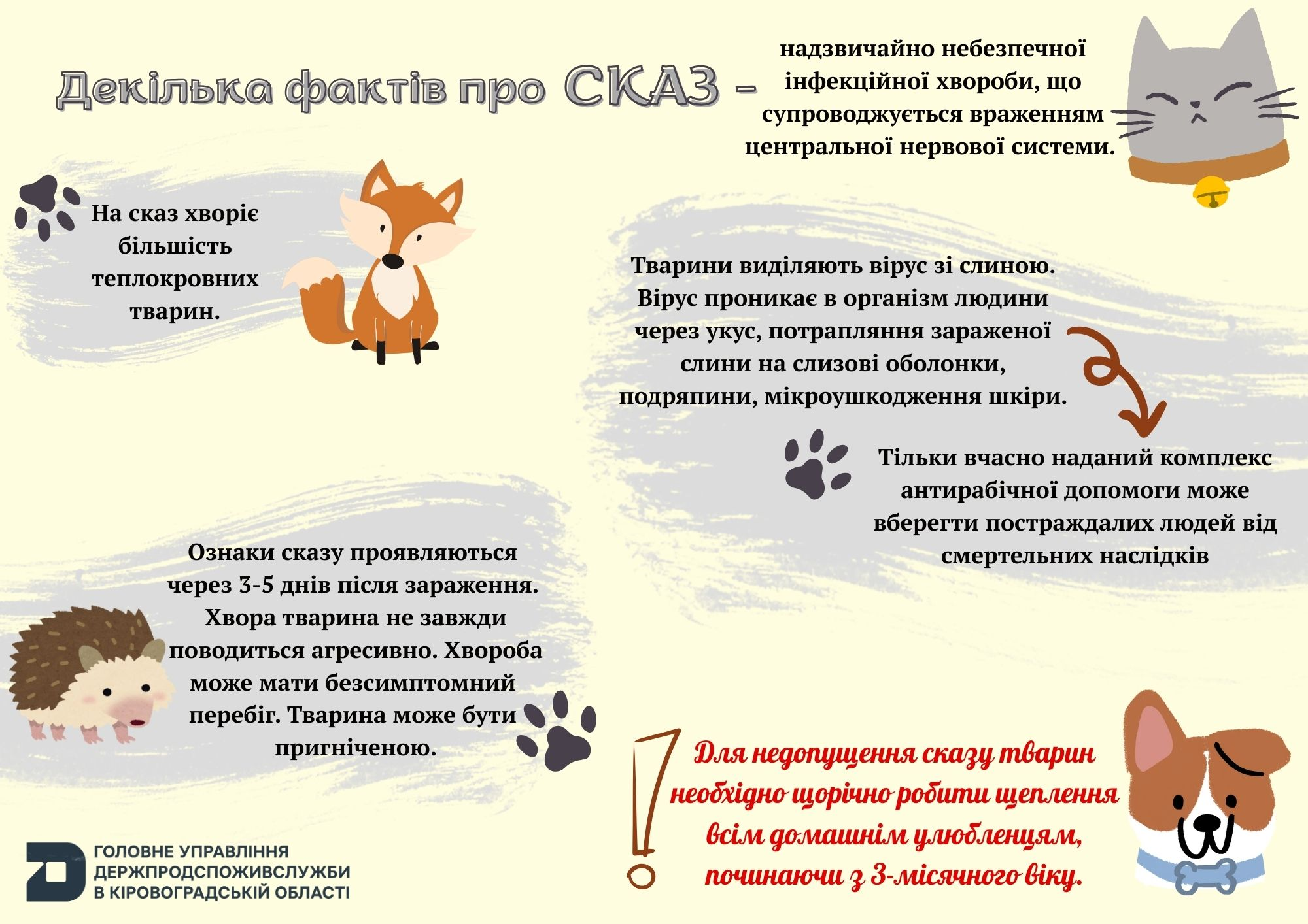 Сказ залишається однією з найнебезпечніших зоонозних інфекцій, що становить загрозу як для тварин, так і для людей. Минулорічна епізоотична ситуація зі сказу тварин на території Кіровоградської області була досить складною.
