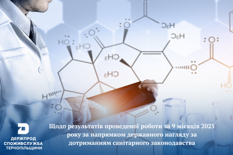 Головне управління Держпродспоживслужби в Тернопільській області звітує про проведену роботу щодо державного контролю за дотриманняс санітарного законодавсва. за 9 місяців 2025 року: