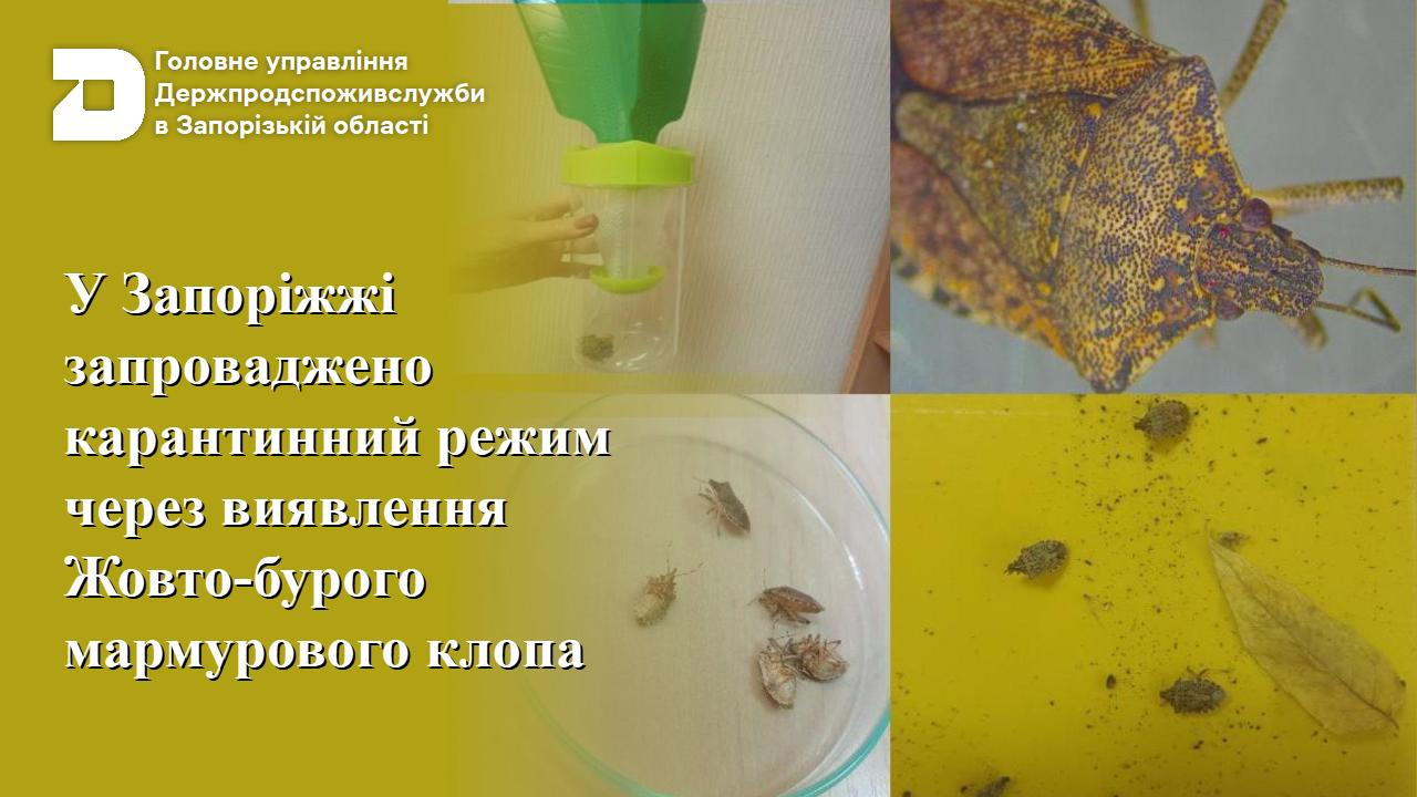 Відповідно до подання державного фітосанітарного інспектора Головного управління Держпродспоживслужби в Запорізькій області, розпорядженням голови Запорізької районної державної адміністрації від 01.10.2025 № 179, на територіях землекористування районних адміністрацій Запорізької міської ради в межах м. Запоріжжя запроваджено карантинний режим у зв’язку з виявленням вогнищ регульованого шкідливого організму — Жовто-бурого мармурового клопа (Halyomorpha halys Stal).