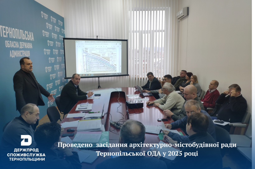04.12.2025 відбулося перше у поточному році засідання архітектурно- містобудівної ради Тернопільської обласної державної адміністрації, у якому на правах члена ради прийняв участь головний спеціаліст відділу безпеки середовища життєдіяльності Управління державного нагляду за дотриманням санітарного законодавства Головного управління Держпродспоживслужби в Тернопільській області згідно наказу № 15-од від 22.09.2025 департаменту архітектури, містобудування, житлово-комунального господарства та енергозбереження Тернопільської ОДА «Про зміни у складі архітектурно-містобудівної ради при департаменті архітектури, містобудування, житлово-комунального господарства та енергозбереження обласної державної адміністрації» на виконання пункту 4 розпорядження голови обласної державної адміністрації від 22.05.2020 № 310/01.02-01 «Про архітектурно-містобудівну раду при департаменті архітектури, містобудування, житлово-комунального господарства та енергозбереження обласної державної адміністрації».