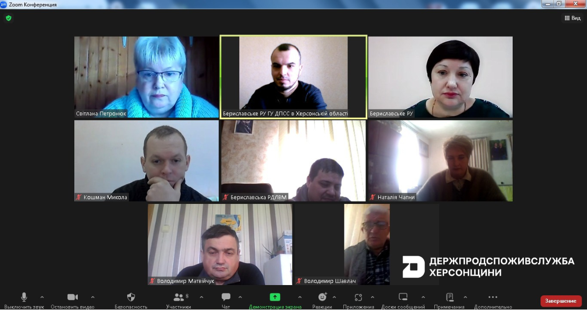 Учасники заходу: уповноважені ветеринари Бериславської районної державної лікарні ветеринарної медицини, а також спеціалісти у сфері безпечності харчових продуктів та ветеринарної медицини Бериславського районного управління Головного управління.