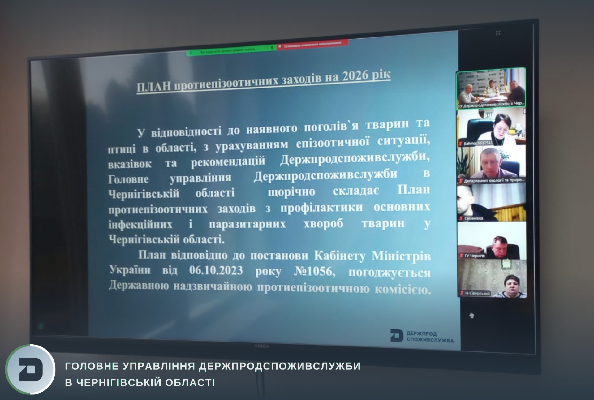 3 грудня в Головному управлінні Держпродспоживслужби в Чернігівській області пройшло засідання Державної надзвичайної протиепізоотичної комісії при Чернігівській військовій адміністрації, до якого долучилися керівники районних управлінь Головного управління Держпродспоживслужби в Чернігівській області районних державних лікарень ветеринарної медицини, районних військових адміністрацій, територіальних громад, користувачі мисливських угідь.